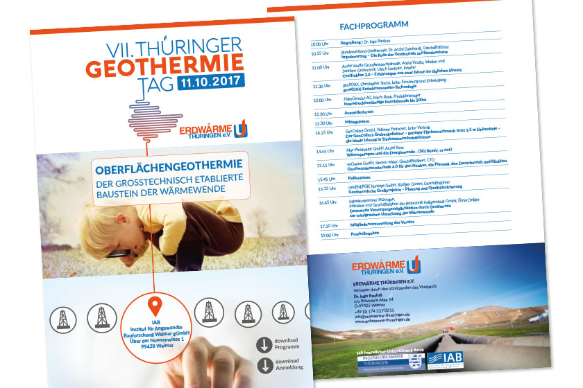 Flyer und Plakat in einem für den VII. Thüringer Geothermietag des Erdwärme Thüringen e. V.
