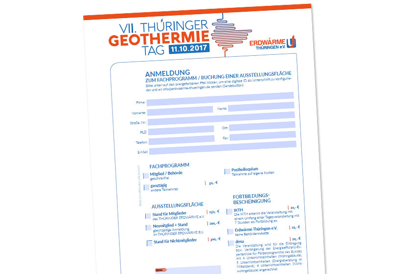 Interaktives Anmeldeformular für den VII. Thüringer Erdwärmetag des Erdwärme Thüringen e. V.