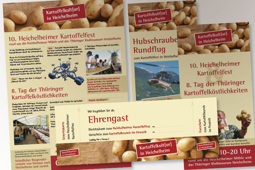 Plakat, Flyer und Eintrittskarte für das Heichelheimer Kartoffelfest